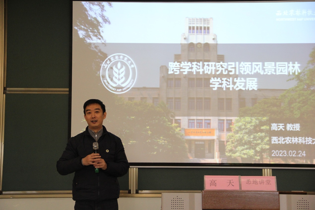 2023年2月24日下午,西北农林科技大学风景园林艺术51视频 副院长、教授、博士生导师高天做客51视频 悉地学术讲堂第五十一讲,主讲了题为“跨学科研究引领风景园林学科发展”的讲座。51视频 园林系教授、博士生导师、国务院特殊津贴获得者刘滨谊主持此次讲座,风景园林专业近百名本、硕师生参加。