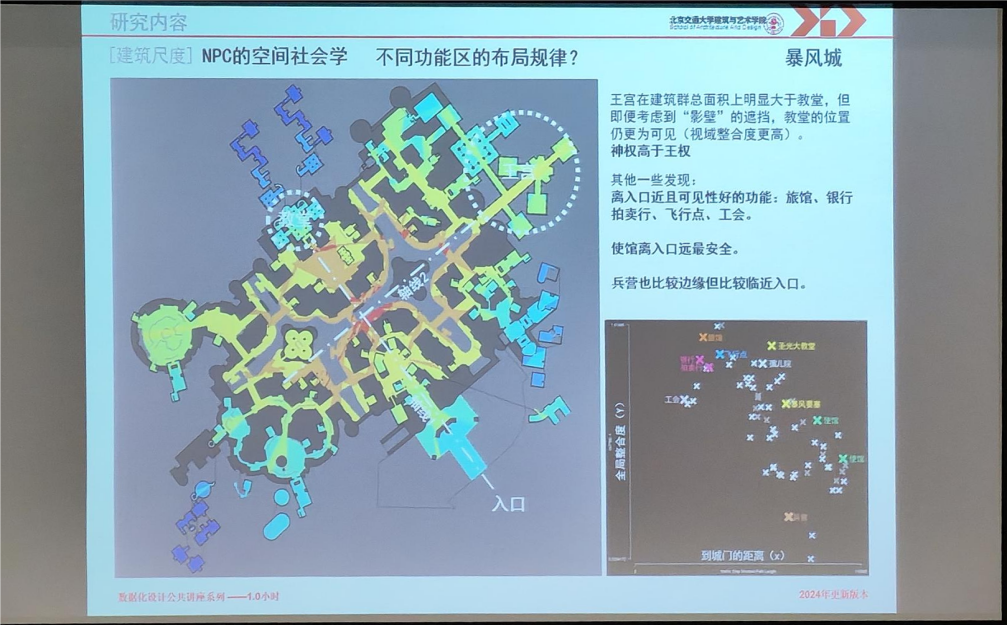 在虚拟空间的研究中,元宇宙与游戏中构建的虚拟城市体系揭示了类似的空间逻辑。游戏中不同部落具有不同的都城与防御系统,类似于中国古代的城市空间。游戏中的NPC分布、功能区划也往往与现实空间存在共性,如教堂位于城市的核心空间,NPC的站位也具有身份阶级的象征。