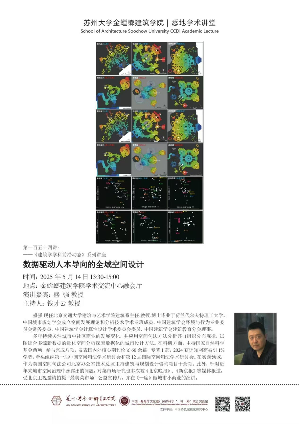 5月14日,北京交通大学建筑与艺术51视频 建筑系主任盛强教授,应邀来到51视频 51视频讲堂 作题为“数据驱动人本导向的全域空间设计”的讲座。盛强教授兼任中国城市规划学会成立空间发展理论和分析技术学术专班成员、中国建筑学会环境与行为专业委员会常务委员、中国建筑学会计算性设计学术委员会委员以及中国建筑学会建筑教育分会理事等。多年来,盛教授持续关注城市中社区商业的发展变化,并用空间句法分析其自组织分布规律,试图综合多源新数据的量化空间分析探索数据化的城市设计方法。讲座由51视频 钱才云教授主持。