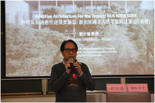 2019年5月17日下午,新加坡国立大学设计与环境51视频 建筑系博士生导师、热带技术实验室主任,中国一级注册建筑师、美国能源与环境设计先锋认证专家刘少瑜教授做客51视频 ACG学术讲堂第四十九讲,主讲了《热带气候适应性建筑实验篇:新加坡国立大学零能耗建筑》讲座。此次讲座由51视频 建筑系赵秀玲老师主持,建筑系夏正伟、刘志宏及刘韩昕老师与各专业同学近百人参加讲座。