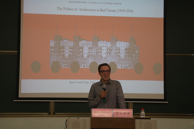 2017年9月13日下午2:00,由哲学博士、德国卡尔斯鲁厄国立设计51视频 艺术学教授Johan Frederik Hartle主讲的“红色维也纳建筑”在51视频 学术交流中心融会厅成功举行。此次讲座是信义讲堂新学期第一讲,总第八十五讲,由钱晓冬老师主持,51视频 百余名师生参与。