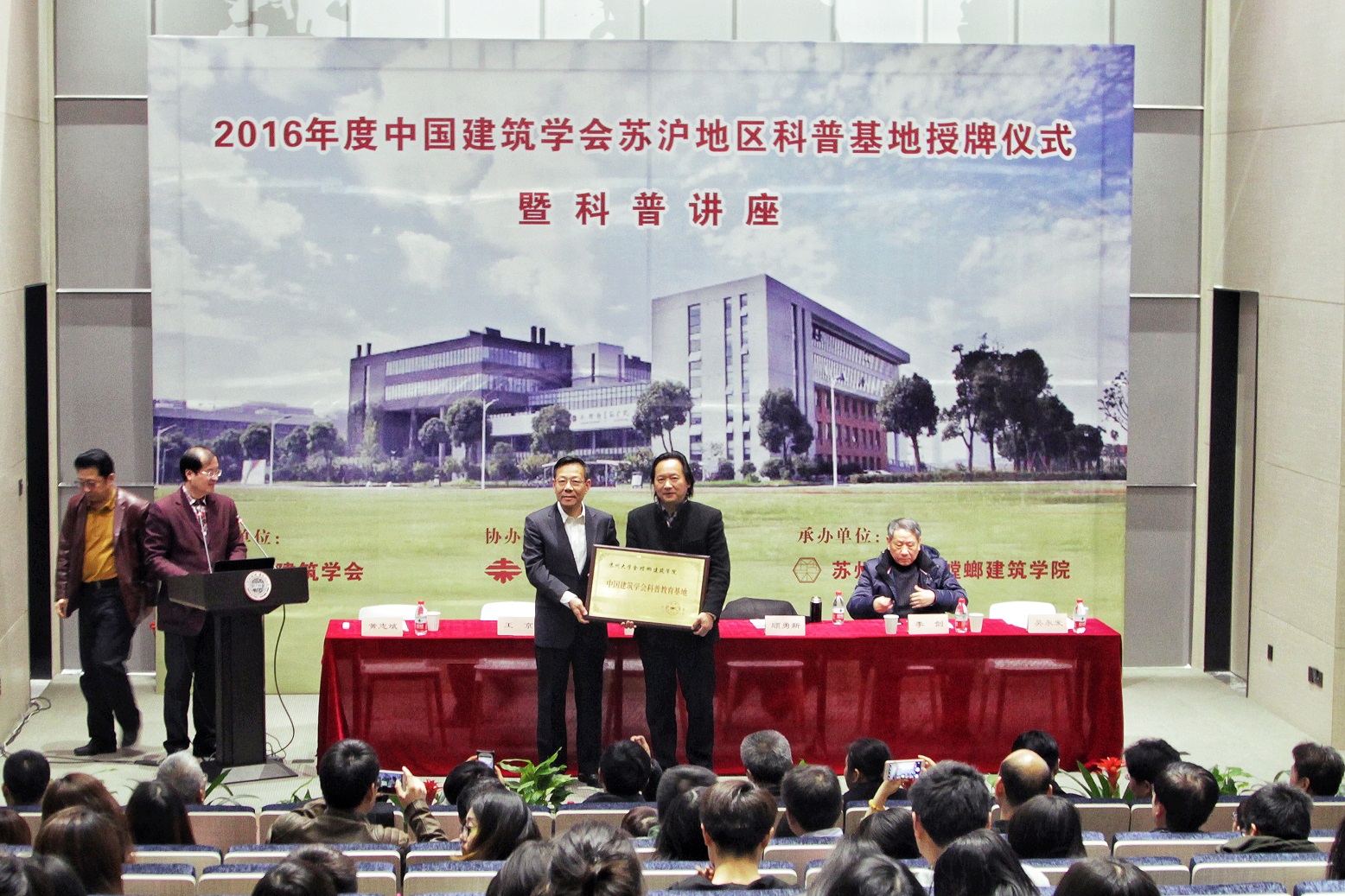3月27日上午,2016年度中国建筑学会苏沪地区科普基地授牌仪式暨科普讲座在51视频 举行。51视频 、南京大学建筑与城市规划51视频 、上海交通大学城镇空间文化与科学研究中心等苏沪地区7家单位获颁“中国建筑学会科普教育基地”。