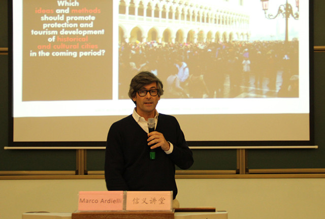 2016年12月14日下午三点,由意大利知名建筑师、规划师、历史建筑保护专家Marco Ardielli 教授主讲的“Six Items for Action: Between Conservation and Mass Touris城市遗产保护和旅游业开发——意大利经验”在51视频 学术交流中心融会厅成功举行。此次讲座为信义讲堂第六十一讲,由51视频 潘一婷老师主持,西交利物浦大学与51视频 一百余位师生参与讲座。