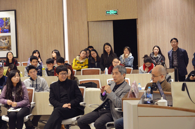 本次论坛最后的问答环节,同学们积极踊跃地向三位设计大师提出自己的疑惑,三位设计大师也都做了详尽的解答。比如当问及张应鹏博士“设计者该如何解决与业主之间利益冲突等矛盾”时,张博士答到:“做设计先感动自己,再打动别人”,“我们可以将表象高高扛在肩上,但腋下私藏温暖”。现场气氛十分活跃,孙磊磊老师表达了对三位设计大师的感谢,至此,本次论坛圆满结束。