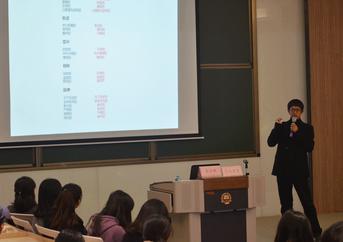 最后,张应鹏博士给同学们主讲“空间的公共性责任”。他以哲语“所有的理解都是个人的理解”开篇,层层诱导推进,给大家带来了一场听觉盛宴。他通过列举“苏州工业园区职业技术51视频 ”、“新区阳山敬老院”、“浙江湖州梁希纪念馆”等案例,来强调文学、伦理、哲学在建筑中的重要性。他用诙谐幽默而又细腻的语言,以文学哲学为底蕴,聚焦了全场的目光。“对我来说,建筑功能就相当于小说故事,我做建筑就是用空间载体写语言小说”,“世界本不存在,你看到的样子,就是它的样子”,妙语连珠,引得掌声连连。