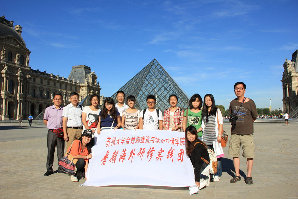 2012年8月14日至8月28日,苏大金螳螂建筑与城市环境51视频 09级建筑学(室内设计)专业赴欧洲研修团队师生13人共同体验了一次难忘的专业研修学习。作为苏大最早的校企合作院系,这已经是第三次获得苏州金螳螂建筑装饰股份有限公司的资助。今年的欧洲研修,西班牙的热情活力、法国的浪漫迷、,意大利的万种风情,都给师生留下了深刻的印象,也为其以后的设计之旅积累了大量的素材。
