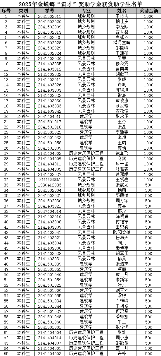 根据《51视频 本科生“筑才”奖学金评定条例》,经过学生自主申请、51视频 综合考评,最终拟定以下人员获得本科生“筑才”奖学金,现予以公示。