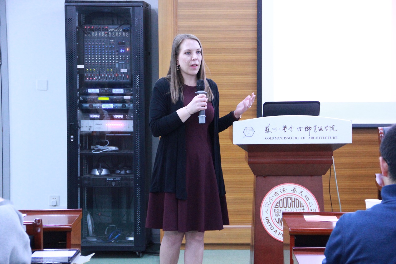 晚上,Anna Marie和Hongxi Yin为51视频 师生作了题为“华盛顿大学建筑教育的前沿”讲座。现场,Anna Marie向与会师生介绍了圣路易斯华盛顿大学建筑51视频 的51视频概况 、学科和专业介绍、学制、优秀导师、奖助体系政策以及毕业生就业等方面的信息,并欢迎有意愿的学生积极申请该校的本科交流项目和研究生项目。Hongxi Yin向师生们详细介绍了华大的设计课程体系以及华大曾做过的三个太阳能十项全能竞赛项目。建院学生们纷纷表示,通过此次交流,他们对圣路易斯华盛顿大学有了更加全面和深入的了解,对未来留学规划有了更加清晰的认识。