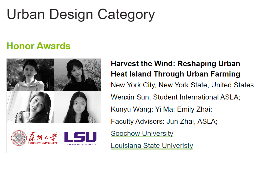 喜讯|苏大风景园林专业学生再次斩获美国景观设计师学会大奖
