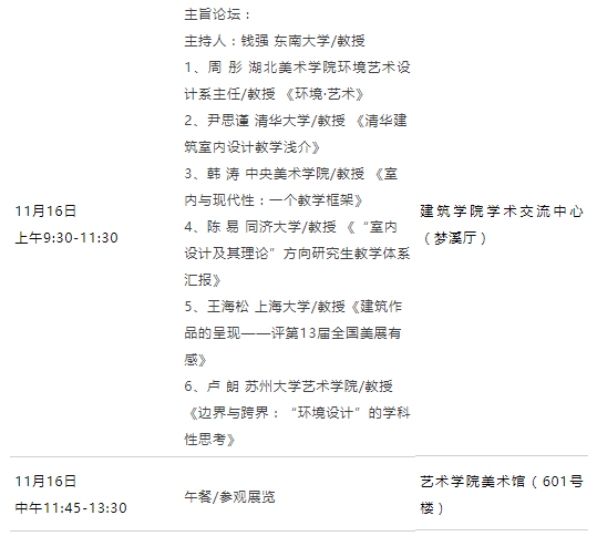 第十六届全国高等美术院校建筑与设计年会议程