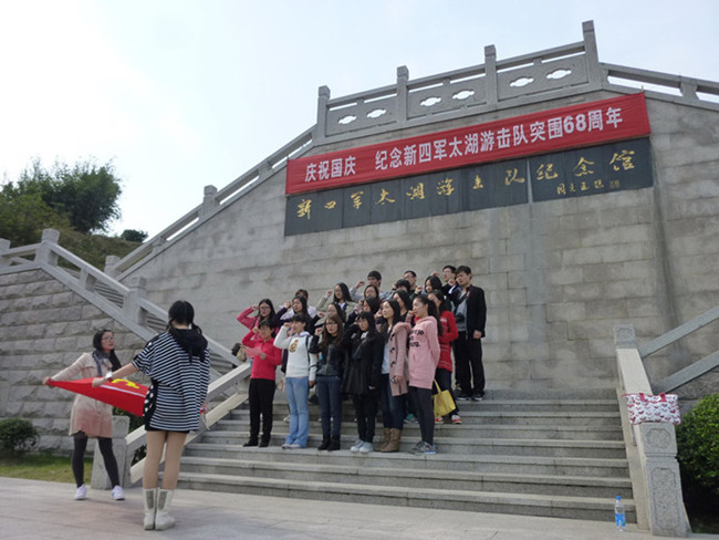 回到纪念馆的台阶前,在“新四军太湖游击队纪念馆”几个金字前,党员们面对着鲜红的党旗,进行了庄严的宣誓。虽然在入党时都进行过宣誓,可是这一刻,在参观了游击队纪念馆之后,在受到了先烈精神的洗礼之后,这次的宣誓每个人都有不同的感触。说这是一次参观,其实更是一次精神的洗礼,一次革命情操的提升。“为共产主义奋斗终身,随时准备为党和人民牺牲一切”,这是对党的宣誓,也是对自己的要求。