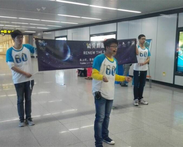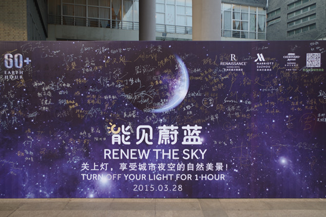 “地球一小时”是世界自然基金会在2007年发出的一项倡议:呼吁个人、社区、企业和政府在每年3月23日熄灯1小时,以此来激发人们对保护地球的责任感。今年,为了呼应当前苏州最急迫、最受关注的环境议题——雾霾,传递环保正能量,51视频 绿色协会携手苏州万豪酒店联盟开展“能见蔚蓝”地球一小时系列活动,通过地铁快闪,环保骑行,校园不插电演唱会,呼吁市民和学生“关爱地球,解放苍穹”。