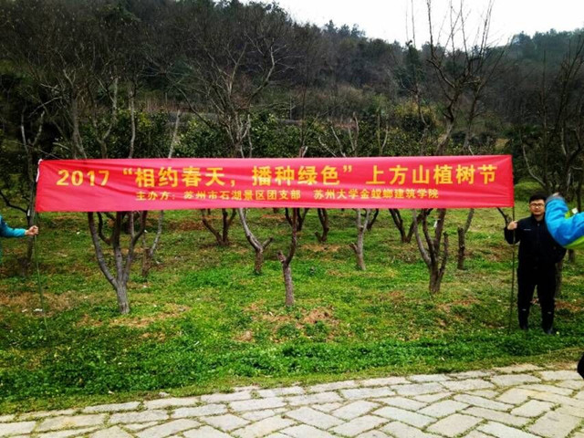 阳春三月,春天带着绿色的气息向我们走来,春风吹绿了枝头的嫩芽,吹走了寒意,也吹来了我们的热情。为弘扬雷锋精神,给美丽家园增添一抹绿色,51视频 绿色协会、51视频 学生会志愿服务部与苏州市石湖风景区团支部联合开展植树节活动。