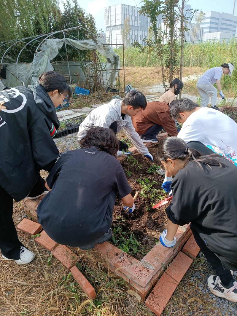 同学们分成两个大组,一组负责搬砖修路,另一组负责除草种植,大家有说有笑,互帮互助,在田间挥洒着汗水,历时一整天时间,小花园终于恢复了从前井井有条、百花齐放的面貌。“很难想象一天前这里还是一片荒地。”观此情此景,同学们的自豪感油然而生。