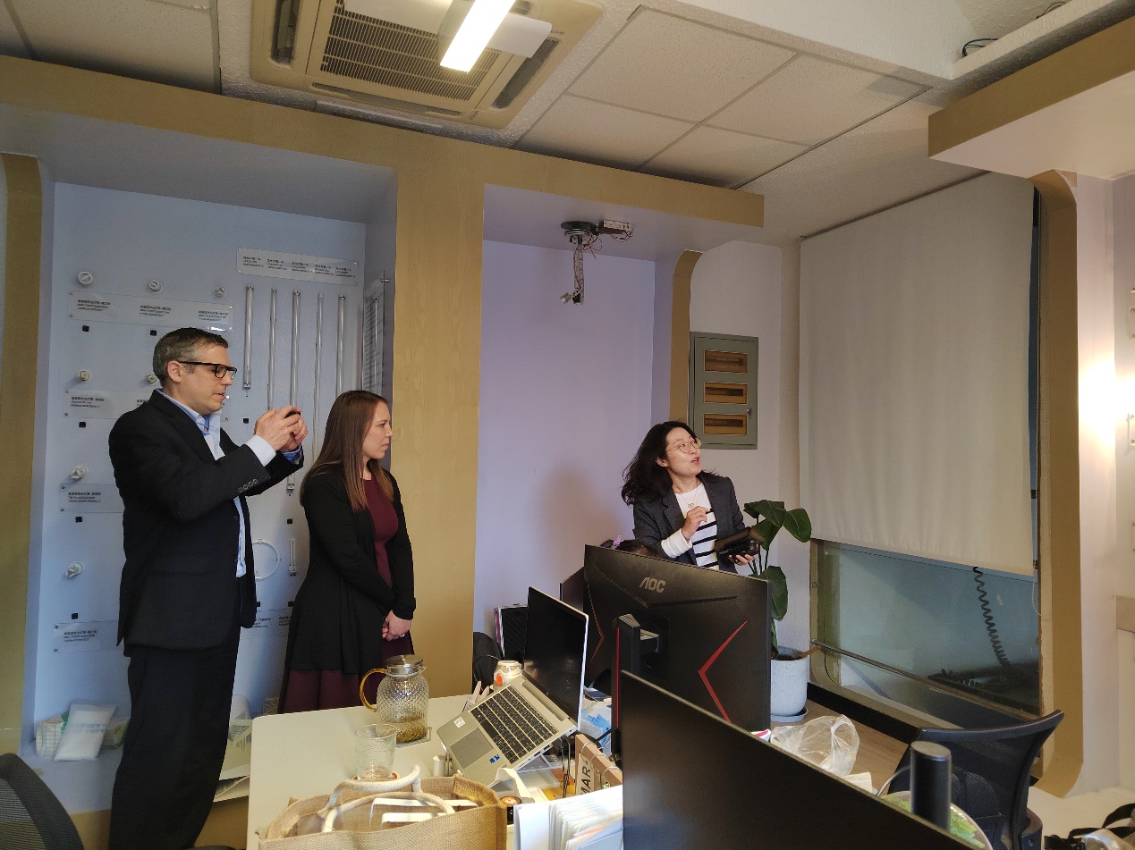 访问团一行在申绍杰等老师的陪同下,参观了51视频 的教学设施、实验室、“一带一路”联合实验室以及学生作品展示区。在参观过程中,Anna Marie和Hongxi Yin对51视频 的硬件设施和教学质量表示高度赞赏,并认为双方在人才培养、国际交流和国际太阳能联合竞赛等方面有着广阔的合作空间。