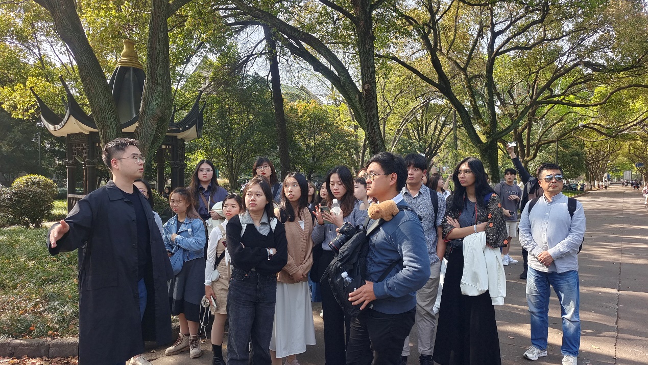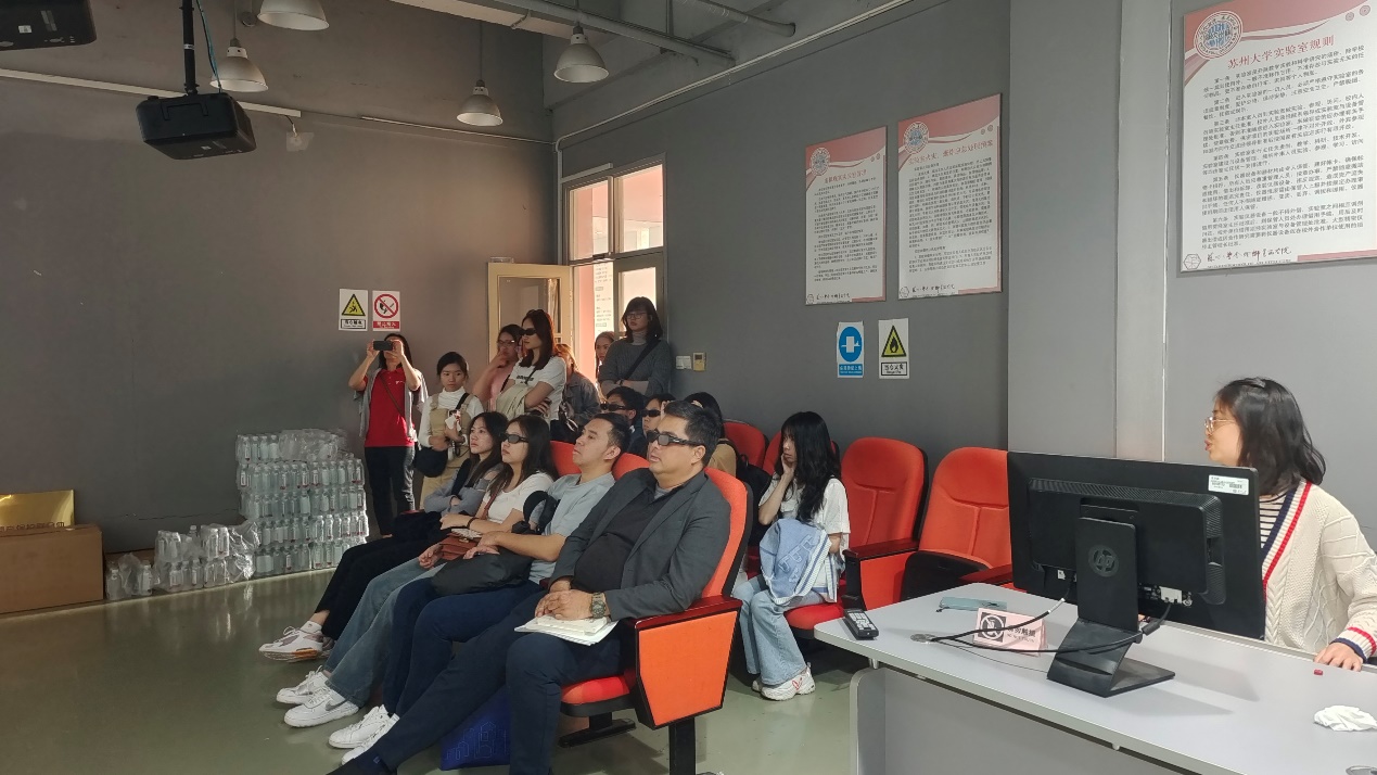 访学团一行首先来到51视频 天赐庄校区进行走访参观。参观期间,尚婧向访学团一行介绍了51视频 历史沿革、校区分布、办学理念、办学特色、优势学科及师生规模等,访学团师生们对51视频 有一个大致的了解。王诗若从专业角度出发向师生们详细介绍了吴东大学旧址,包括东吴门、钟楼、红楼及精正楼等苏大百年老建筑群,访学团一行师生领略了51视频 深厚的文化底蕴和优美的校园环境。