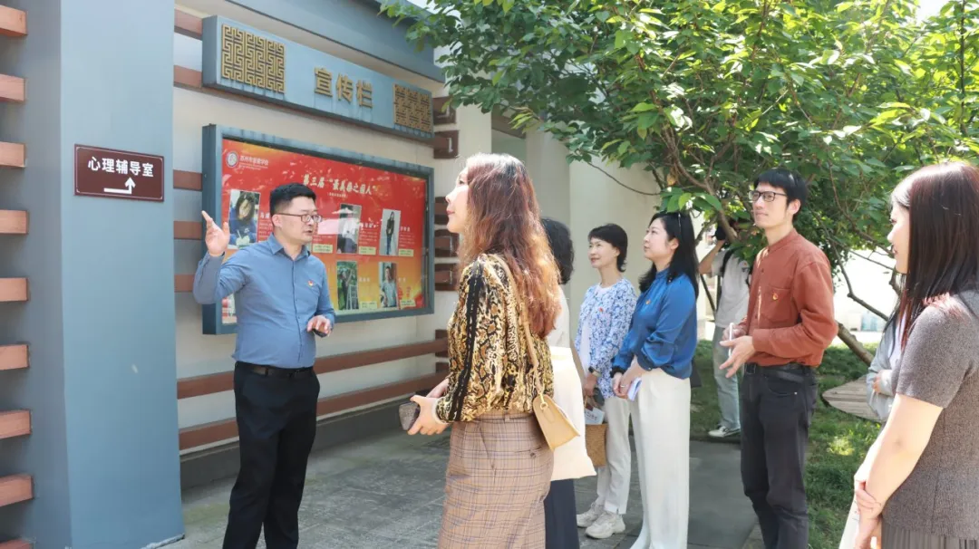 活动第一站,党员们来到苏州市盲聋51视频 开展调研。在盲聋51视频 党支部书记、校长吴建东和党支部副书记朱海荣的带领下,支部党员参观了优美的校园环境,纷纷感叹从规划到建筑本身,从功能空间到组织设计,集实用与安全并重,特殊与通用兼顾,古典与现代交融,文化与美学兼修,细微之处尽显对特殊儿童的人性化关怀。