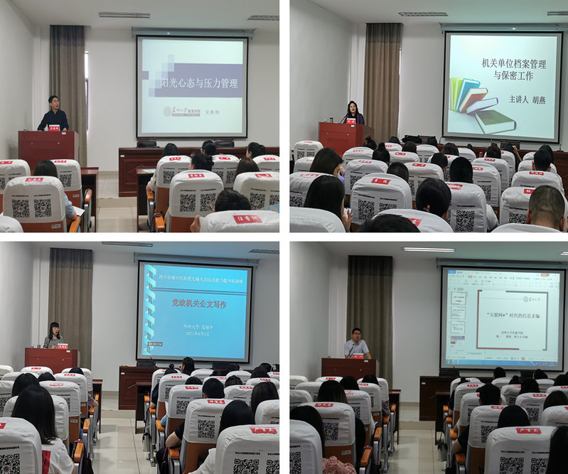 此次培训班为期三天,在课程设置上围绕学员需求,针对性地安排了《党政机关公文写作》、《政务网站内容管理与信息采编》、《新闻写作——速度与激情的文字表达》、《机关单位档案管理与保密工作》、《从百年党史看党的初心和使命》等课程,邀请了校内知名教授进行授课,授课内容丰富、讲解深入浅出,重点突出,学习成效显著。